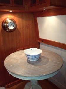Well that is not quite true…..it is more “night of the round table”. Me being impatient as some might say, I just think I am excited, well I wanted to take the table over to the boat to see what it looked like as I was worrying that it would not fit. Panic over, it fits. It is beautiful. Tomorrow night we will take the chairs over, then at least we will have somewhere to sit and eat at when we are over at the weekends.