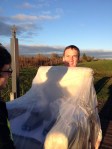 Early morning call today from Laura Ashley saying they were at the marina at 8am. Mad rush to get there as I was on my way to work. Luckily Iain who I work with was passing that way and so he gave Roy and myself a hand with the furniture. He was brilliant. I always like to take pictures of the progress but sometimes my timing is not always convenient. Iain found this out today as I asked him to stop for a few seconds whilst I took a photo. He had his hands full at the time with the new furniture. Bad timing but excellent photo!! Thanks Iain.