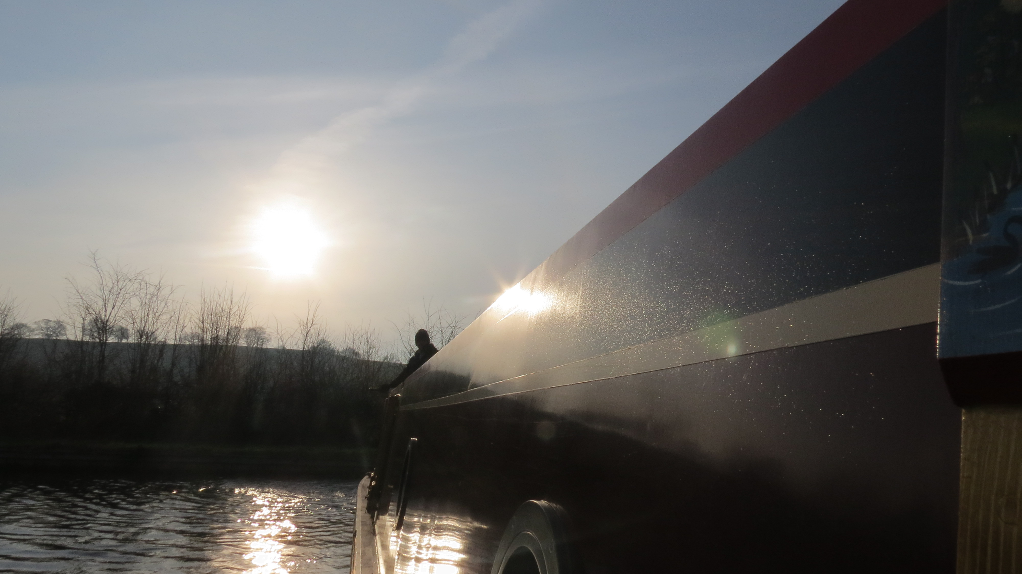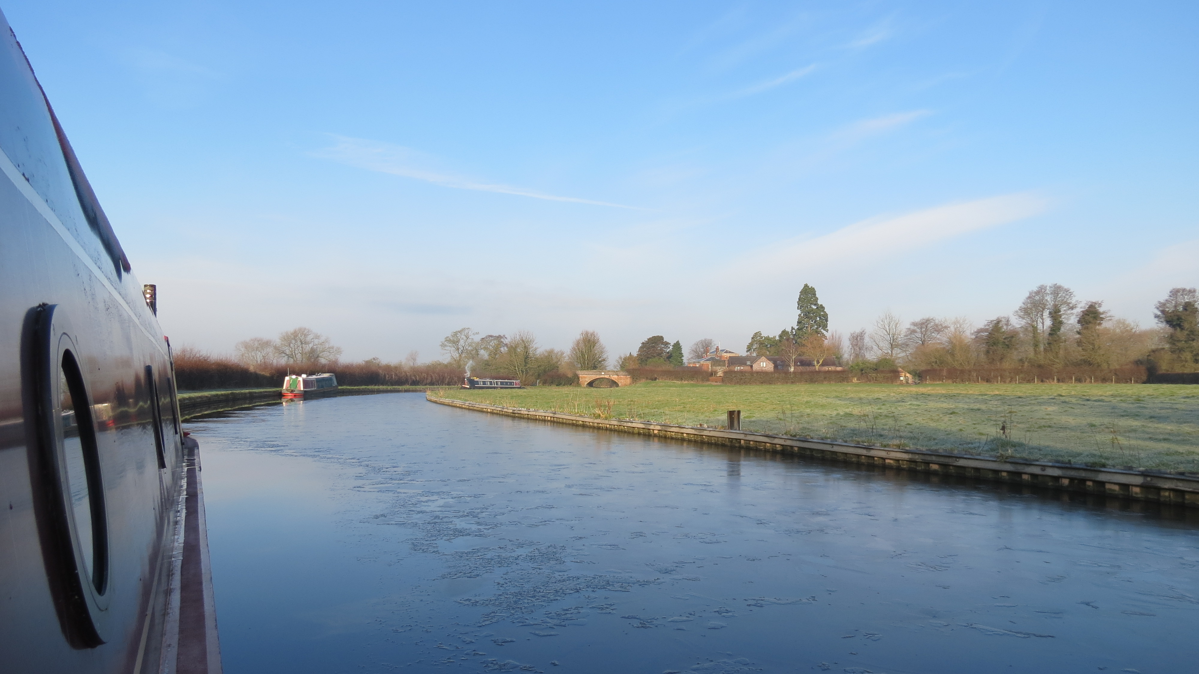 Frosty start to the day. The canal had completely iced over but everywhere looked beautiful. Took a few photos from inside the boat and one bonus was the tow paths had frozen over, excellent, far better for walking on especially with a dog.