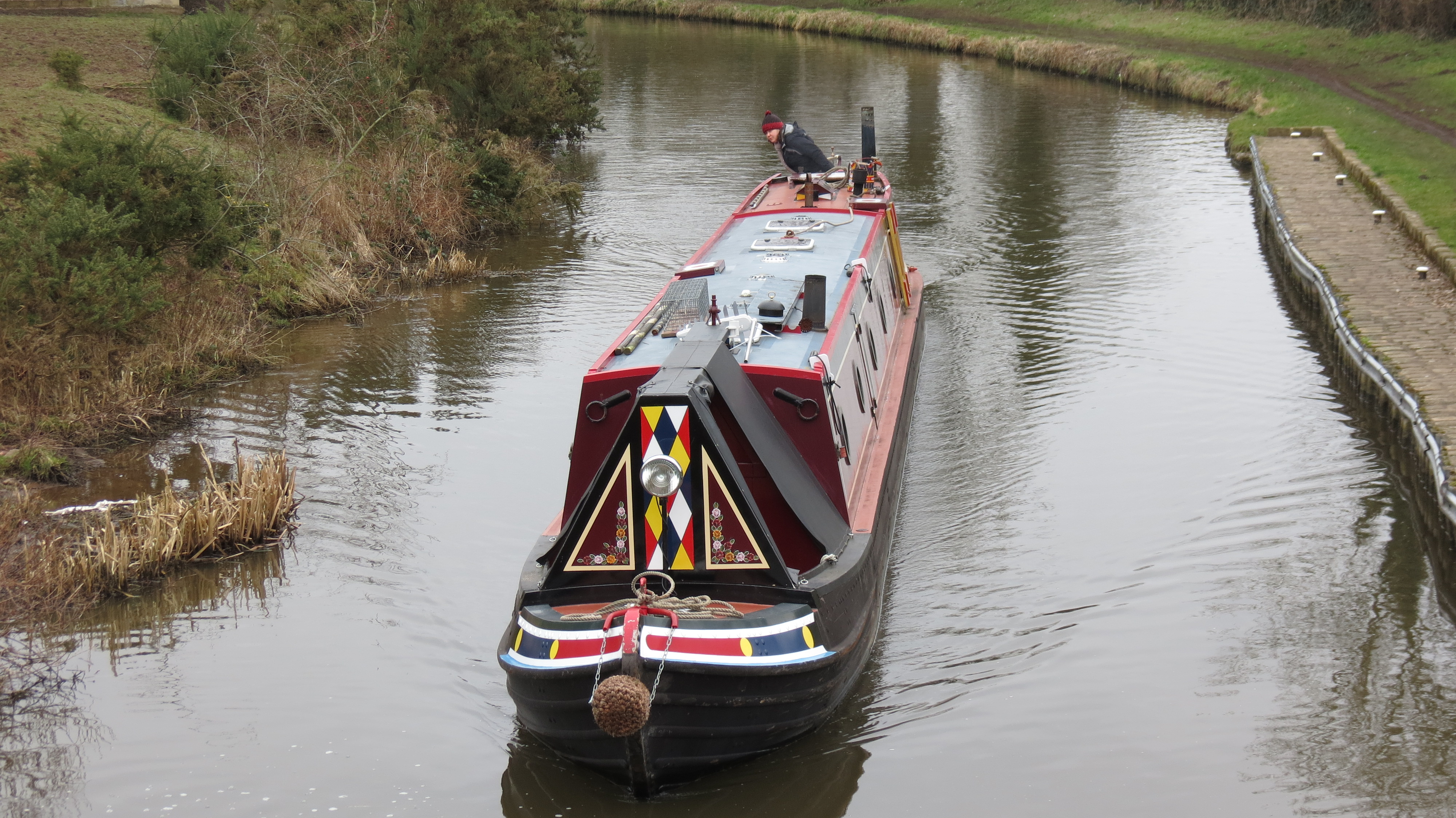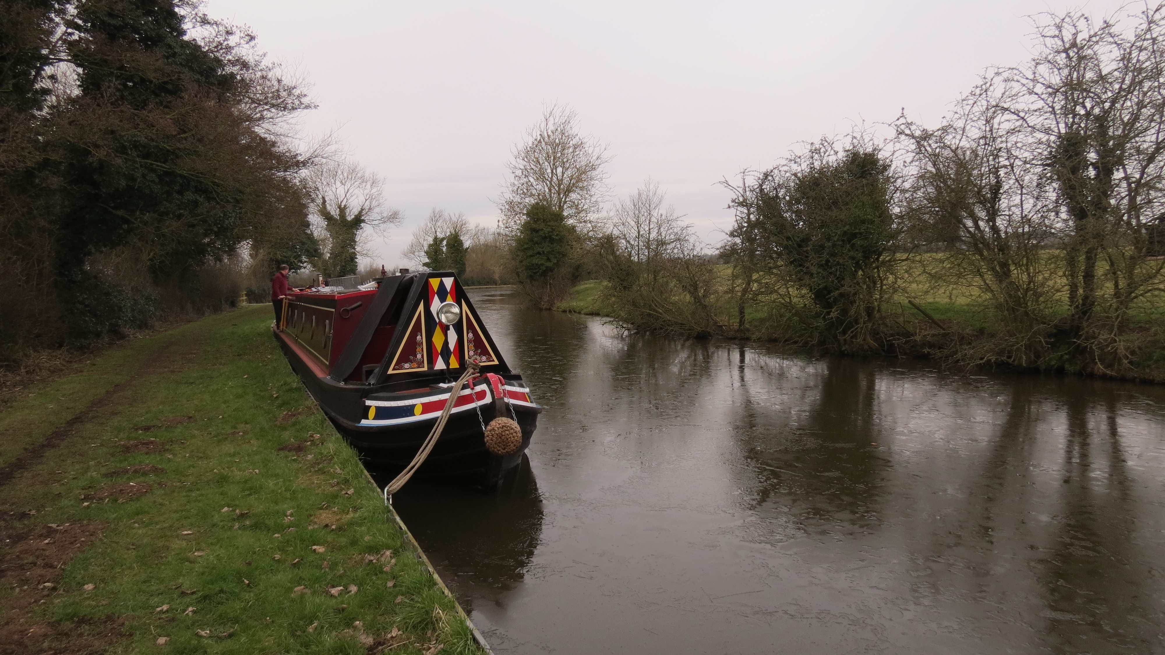 Cold trip back today, but I have worked out as long as you keep the doors closed behind you are drop down a step ( I can only just see what I am doing though when I Have done this) you can feel the warmth so well from the back cabin stove as you are cruising along. It is o.k while the canals are quiet because I would not do this normally as I could only just see. It must have just looked like a head driving the boat!
