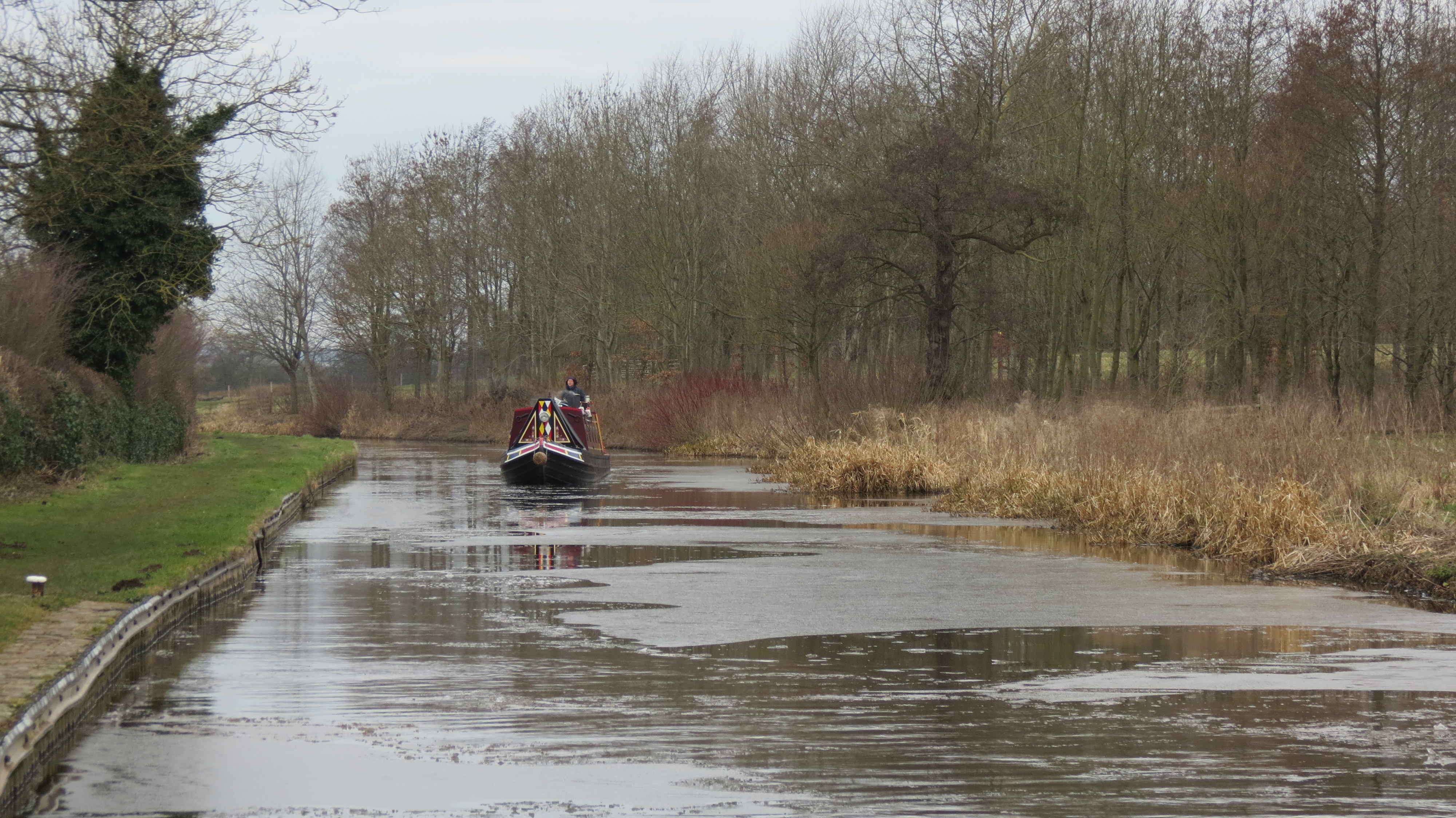 Anyway, sure as can be up came Roy in the distance on Foxglove. Rebus had made an ice path in the canal as it had broken all the ice.I jumped on at the lock and took it through with Wish back on board and it was a good job because the towpath on the other side of the lock was just thick mud, not good with a dog.