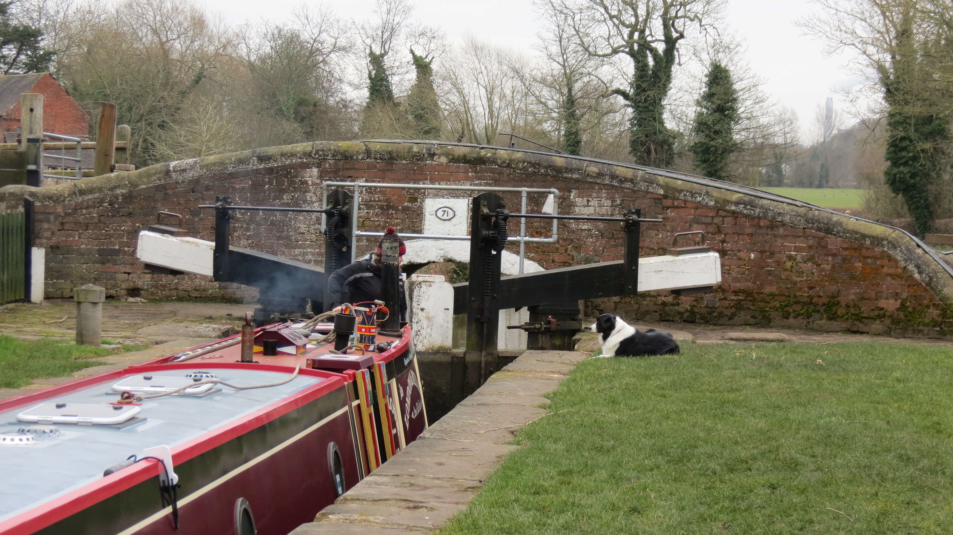 It has been a lovely weekend. We made out way to Wolseley Bridge yesterday. Roy started the boat up while I took Wish for a walk and I said I would meet him at the first lock.