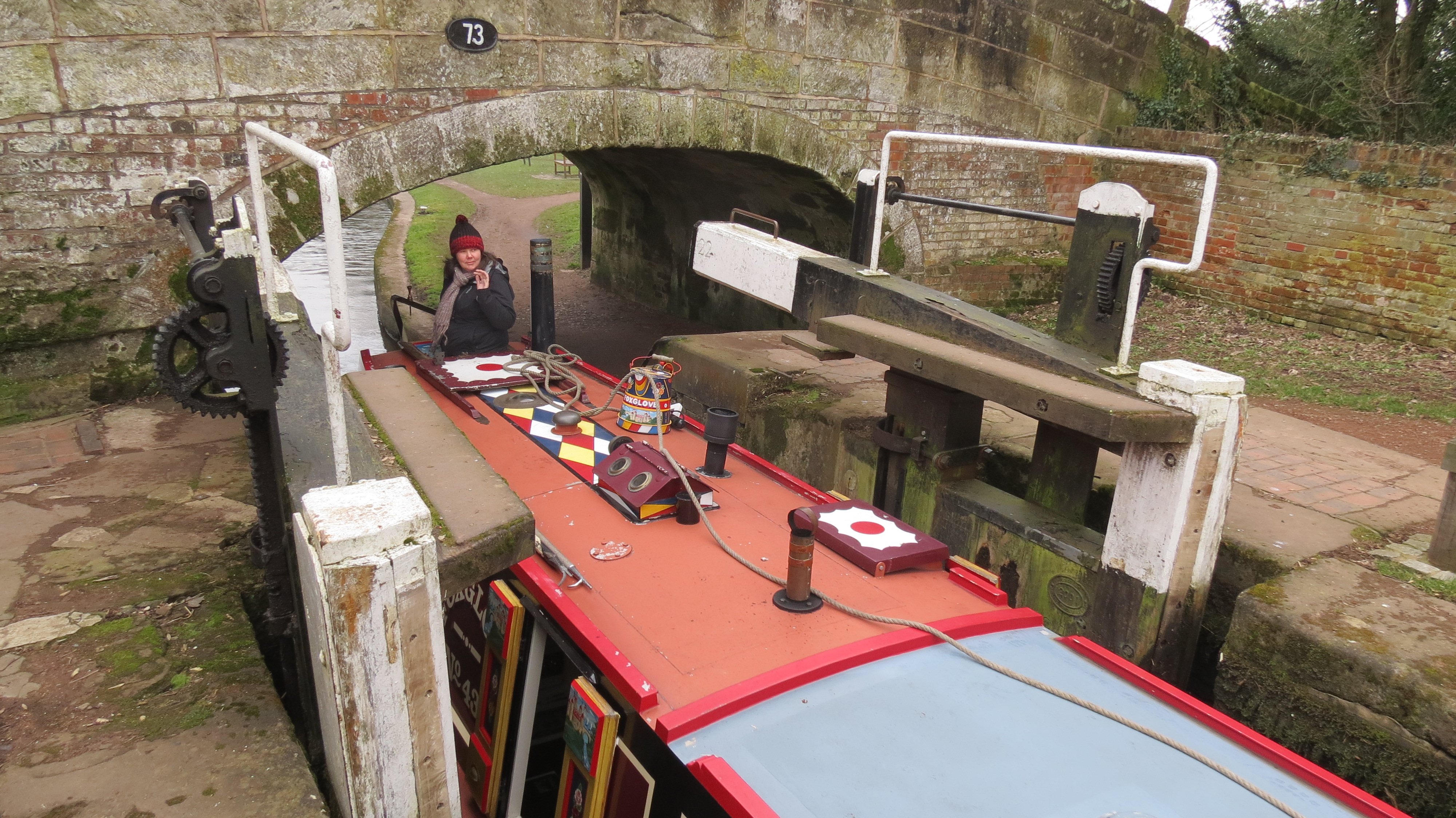 It did start to snow a little on the way but it was a lovely walk then we got back on Foxglove and headed for Wolsley bridge. Not many boats about at all.