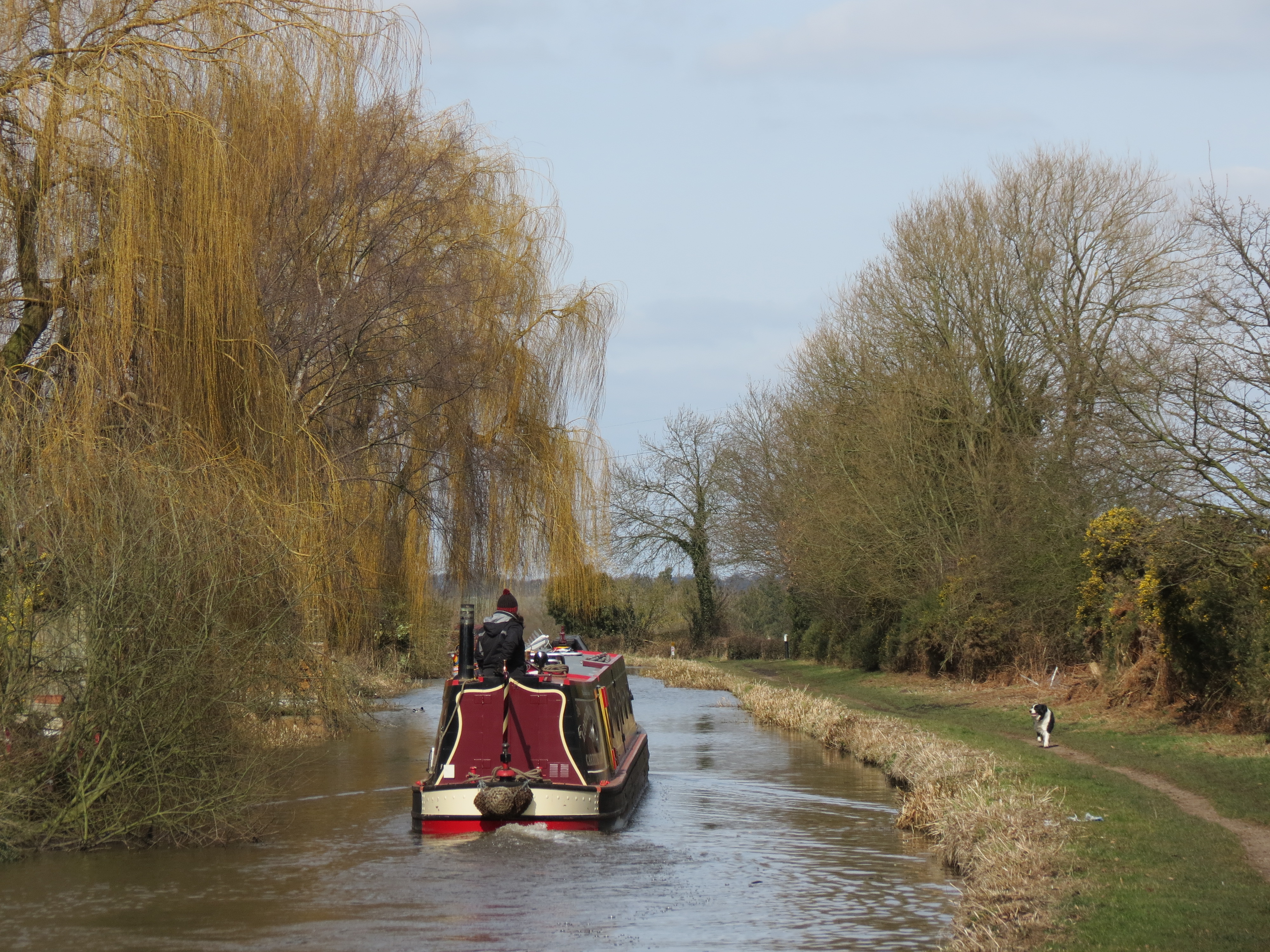 We arrived on the boat Thursday night late and set off first thing Friday morning and got back home at 10.30pm on Monday. We did not want to leave as we had both had such a great time. The weather had been fabulous. We were very lucky especially after the previous weekend with all the snow. We went as far as Kings Bromley marina where Wish made friends, believe it or not with another collie dog, Bingo. They had a ball to play with which kept them both amused for at least 30 minutes whilst Roy & I were talking to the owner of Bingo. Never got to know his name. I always find this quite funny because you can guarantee you will always find out and remember dogs names but never their owners.