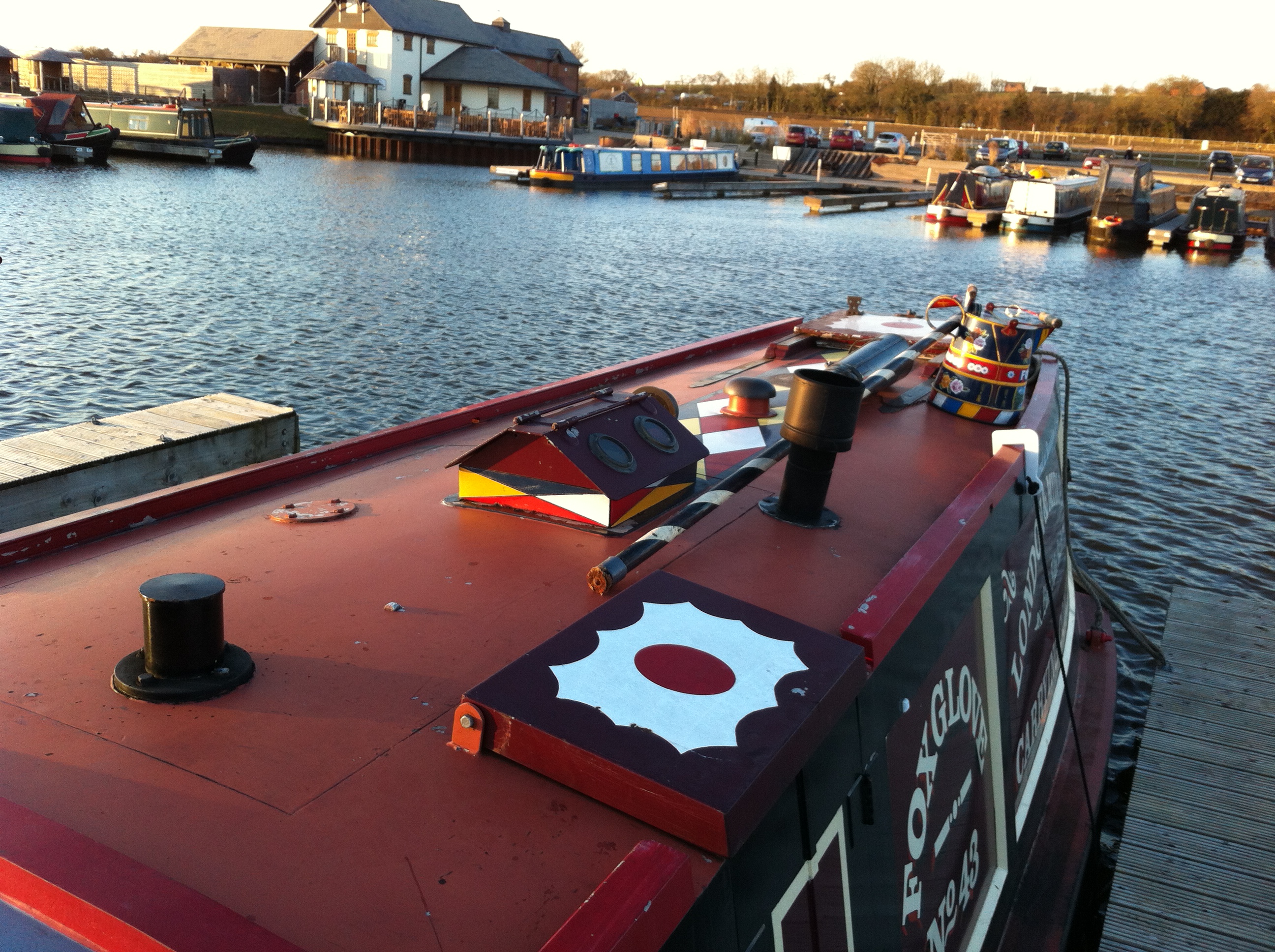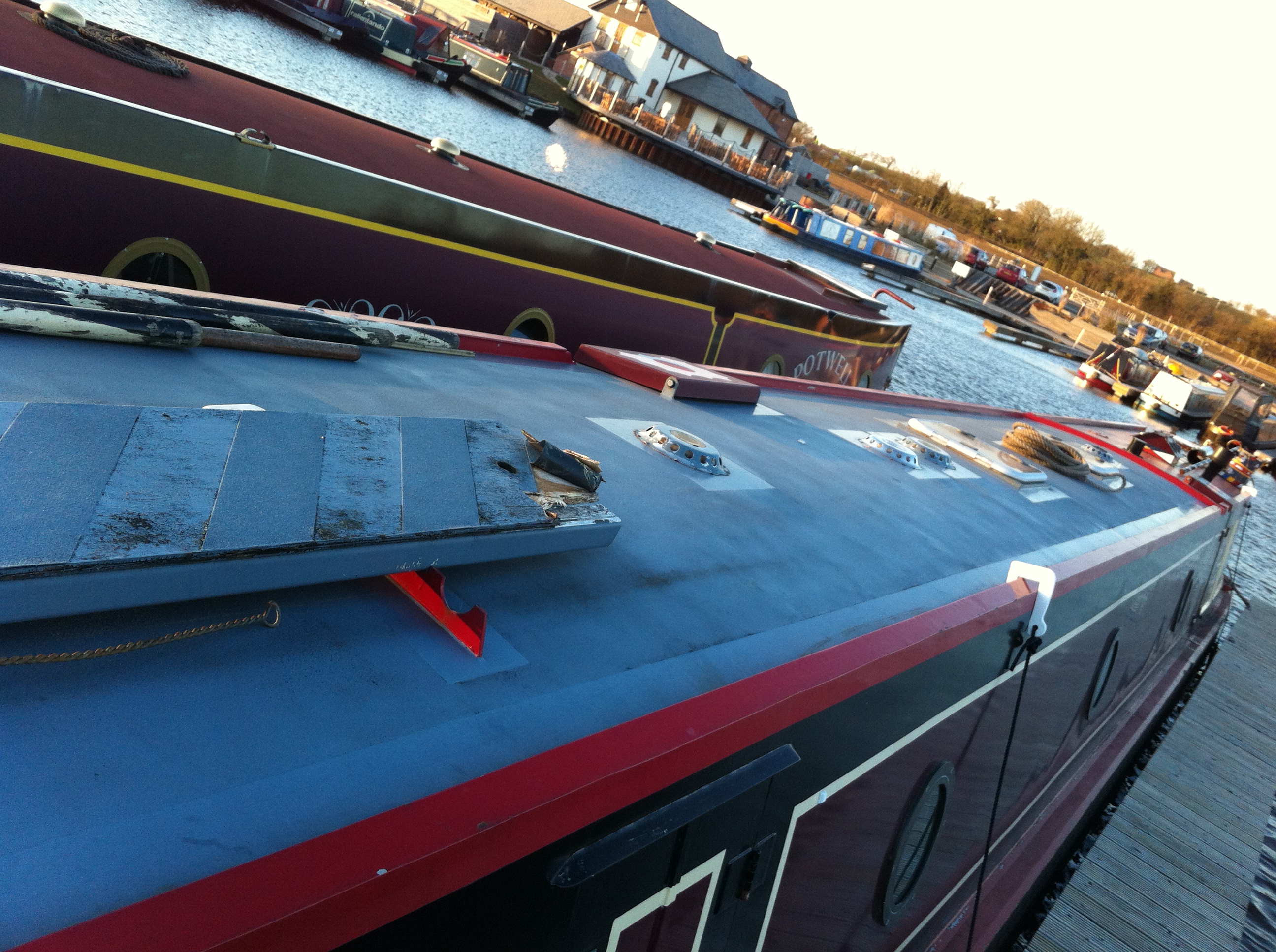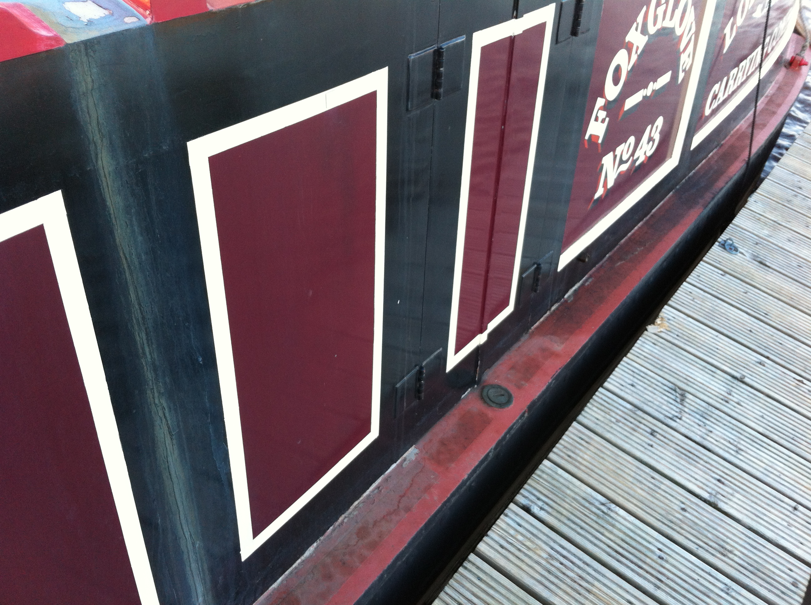 Roy has been over to the boat tonight to take some close up pictures of the boat ready for the weekend as we are going over to meet with Sally Tooze who will be taking on the job of repainting Foxglove. I am very excited and very nervous about it at the same time. So many decisions to make, especially the colour scheme that I just do not want to get any of it wrong. From a distance Foxglove doesn’t look that bad. In fact this last few weekends I quite like her the way she is as she looks like a traditional, solid narrowboat, rugged almost for a better word if that makes any sense. It is only when you look close up that you realise how much she really does need the repaint. Here are some photos taken earlier tonight: