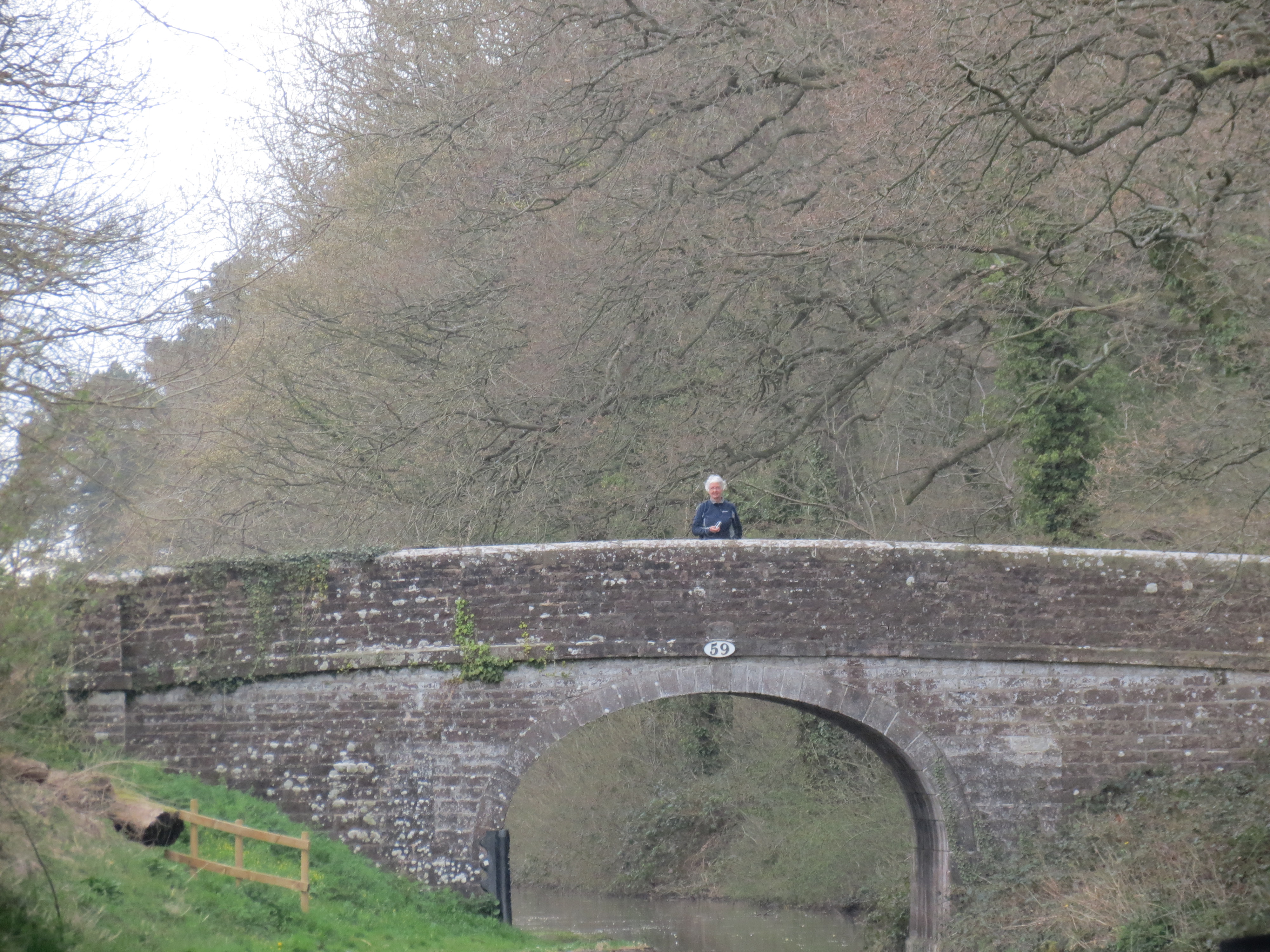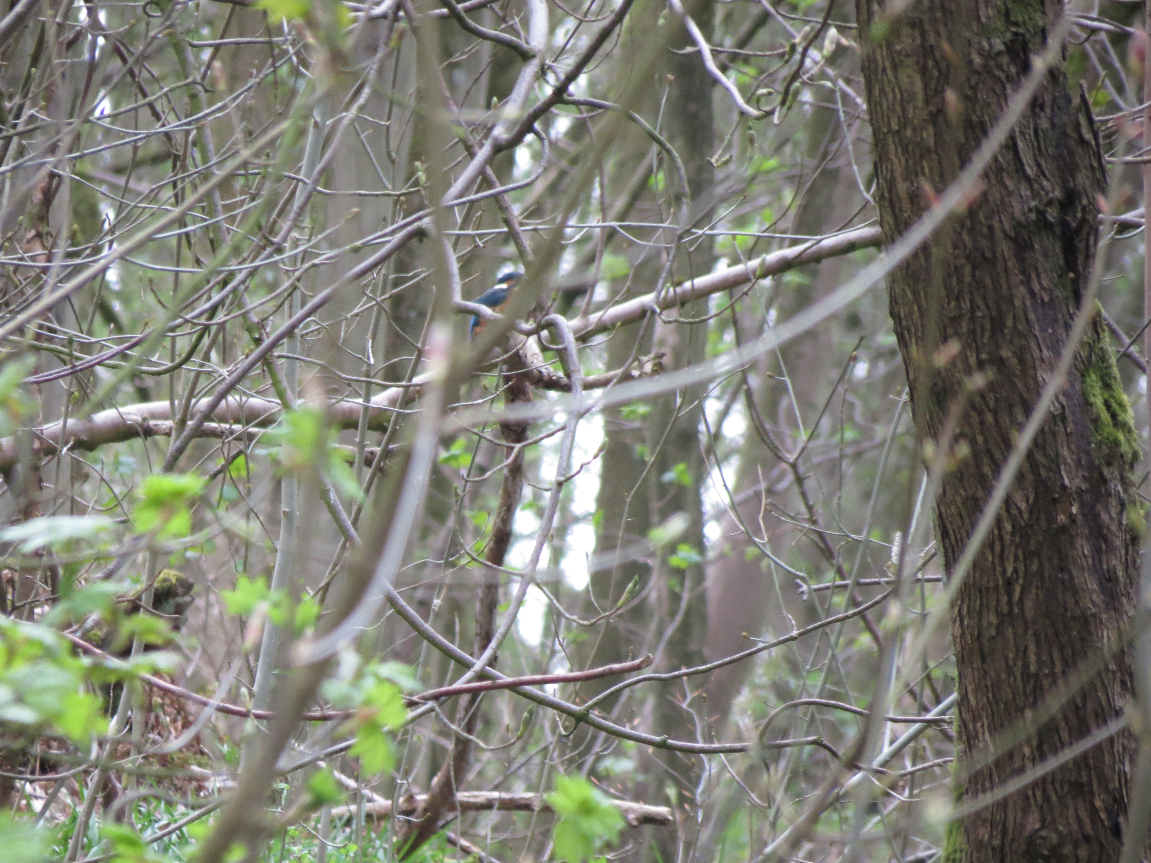 Grub Street IMG_0405 Woodseaves WoodseavesYesterday ended at Tyrley Wharf where we met with our friend Gloria. We had yet another glorious day of weather and seen some beautiful scenery. I spoiled the best photo moment ever by getting so excited what I had seen that I frightened it away. It was a Kingfisher. The second one I had ever seen in my life. It was sitting on an overhanging branch on the canal just ready to be photographed. I turned round to kingfisherRoy and shouted look there’s a Kingfisher, look, look, nearly crashed the boat trying to get my camera out and in the commotion I frightened it off. It flew off into the bushes and I thought I could still see it and I did…….this is all I managed to capture: