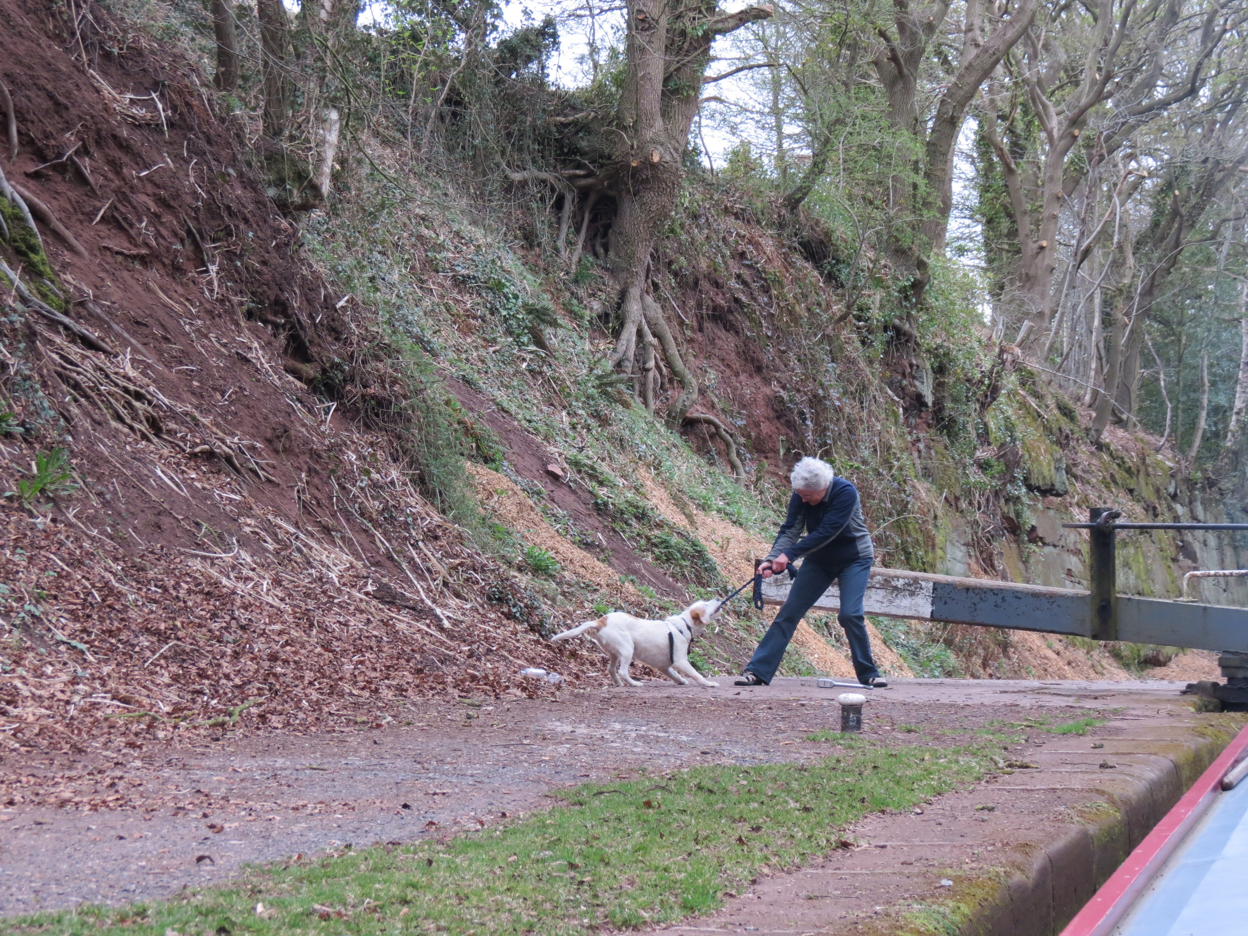 WishWish has had a great time again today. She has loved doing all the locks with us. She has been very good today. She was even very friendly with a little Westie dog whose owners stopped to chat with us as we were filling up with water. For some reason, Westie’s are the only dogs that Wish seems to like……..we find this very strange……..she must think they are a sheep or something!! Hi Vivien & Alan if you are reading. Bit of a coincidence really as they are at Overwater Marina but in their caravan. They said they will get to see Foxglove being taken out of the water on Tuesday as they will still be there. If you have a camera it would be great if you could take a photo for us. Sunk NorburyWe wish we could really be there to watch but unfortunately we have to go back to work. Work??? That has been a sore subject this week……I do not want to go back, I am enjoying being out on the canals so much that I just do not want it to end. Time will tell 🙂