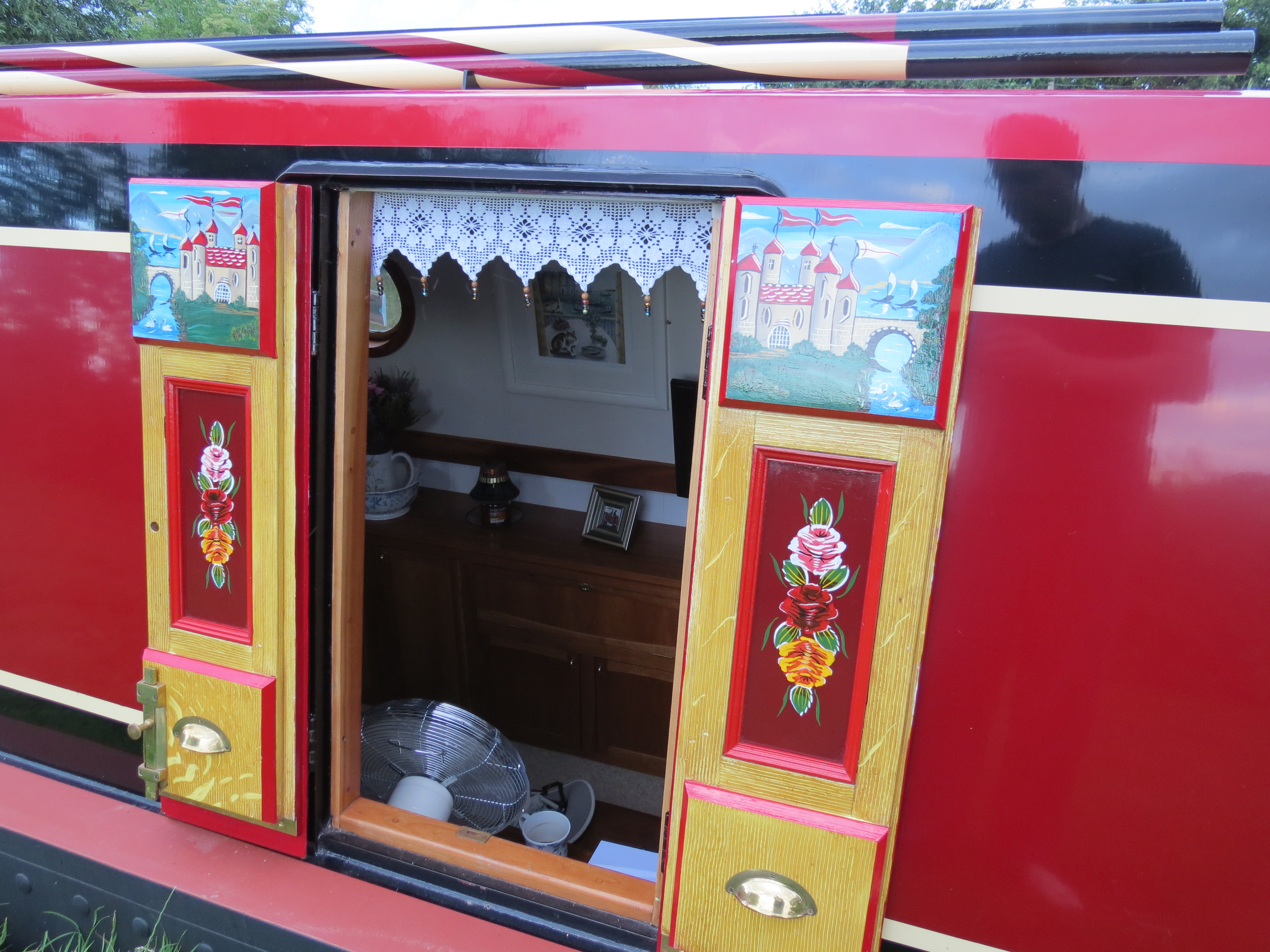 Had some time to do a few hobbies today on the boat. one thing I have done is sewn some beads onto some lace for the lounge area of the boat. I think it looks really sweet from outside against the hatch doors. I enjoyed doing it which is the main thing.