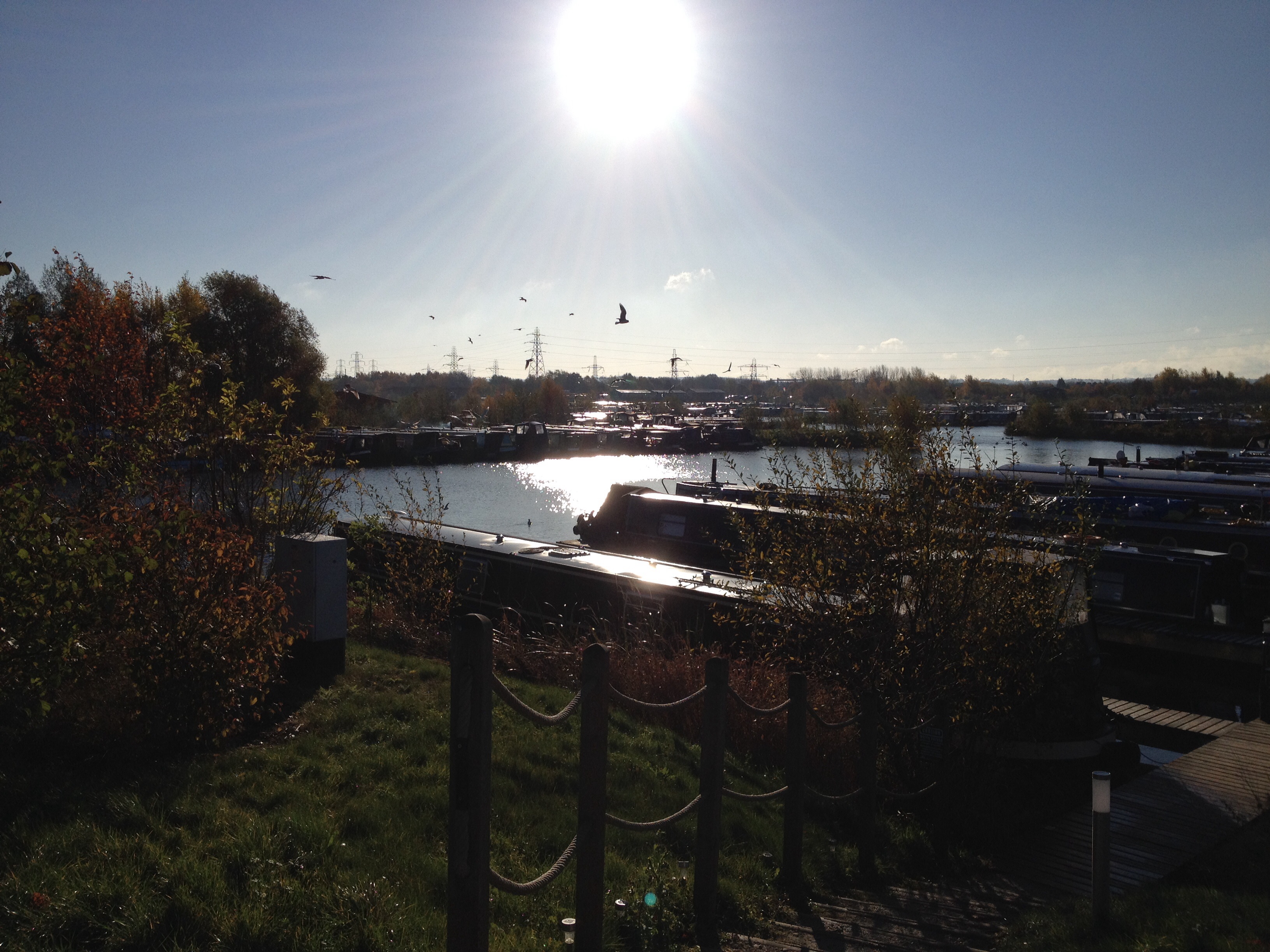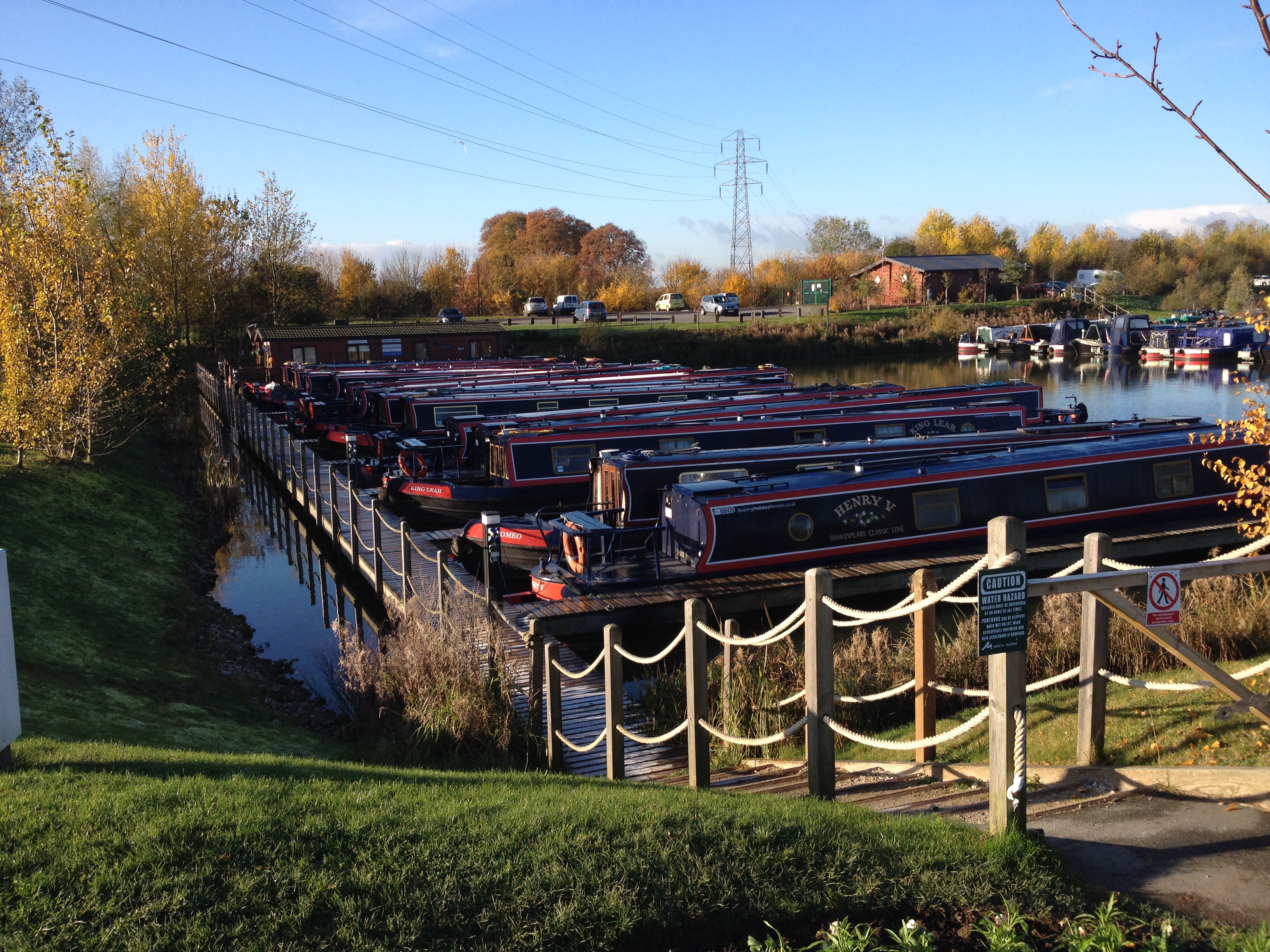 Most of the hire boats were all moored back at the marina all lined up ready to be cleaned. The Autumn leaves were falling all around. Really beautiful.
