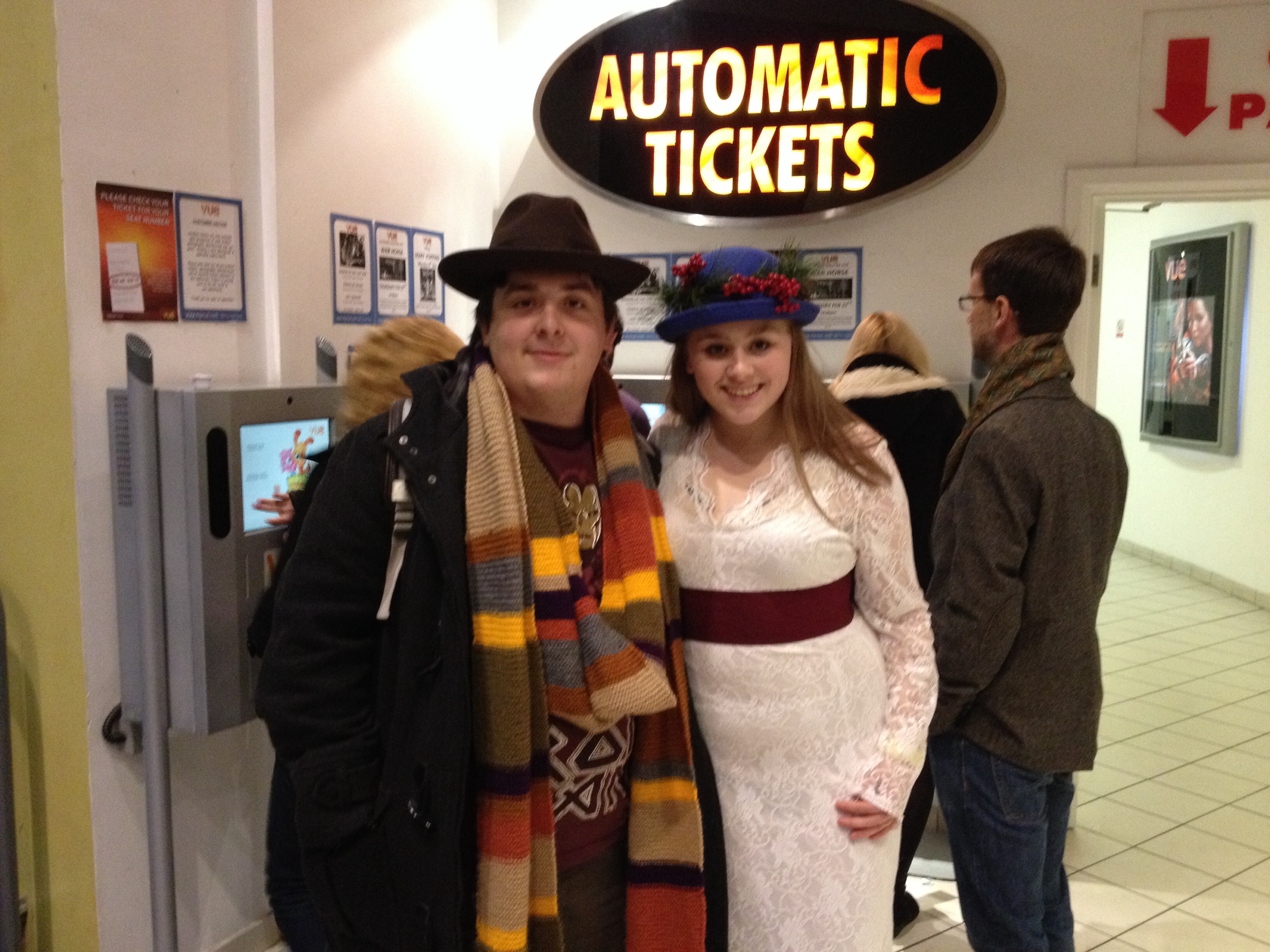 Roy was looking forward to watching Doctor Who as it was a special viewing at the cinema to celebrate its 50th Anniversary and it was shown in 3D. Roy grew up with Doctor who as a kid, I mean watching it on TV I don’t mean Doctor Who was his father!! imageThe cinema was packed and I was surprised because all generations were there and some made the effort to dress up ( we didn’t although I did suggest we could go as Daleks by sticking a plunger on our foreheads!) Some people really got into character.image