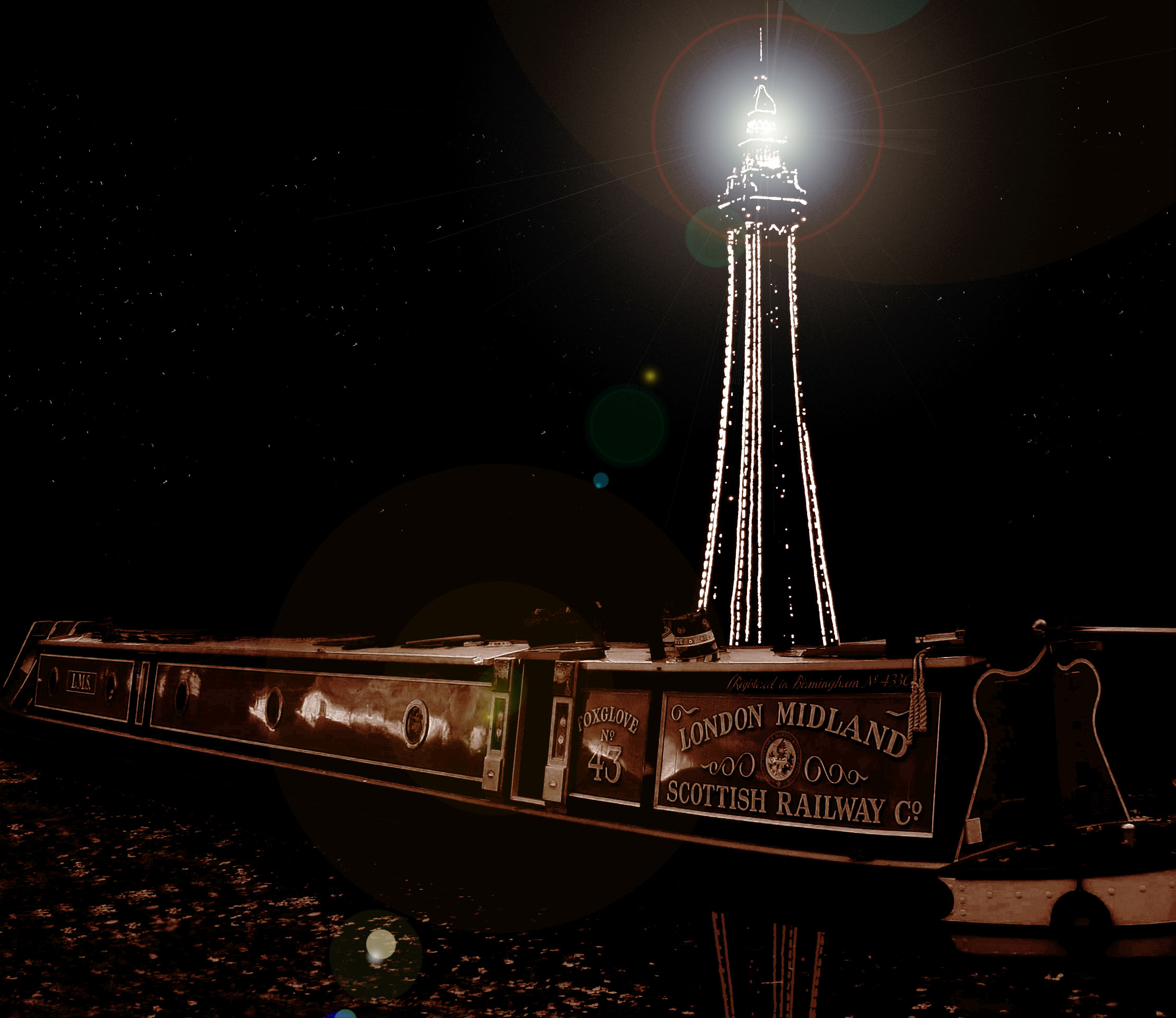 It is a photo of Blackpool Tower all lit up and Roy did his magic with a photo of Foxglove, darkened it, added the reflection and EH PRESTO! That is what he got.