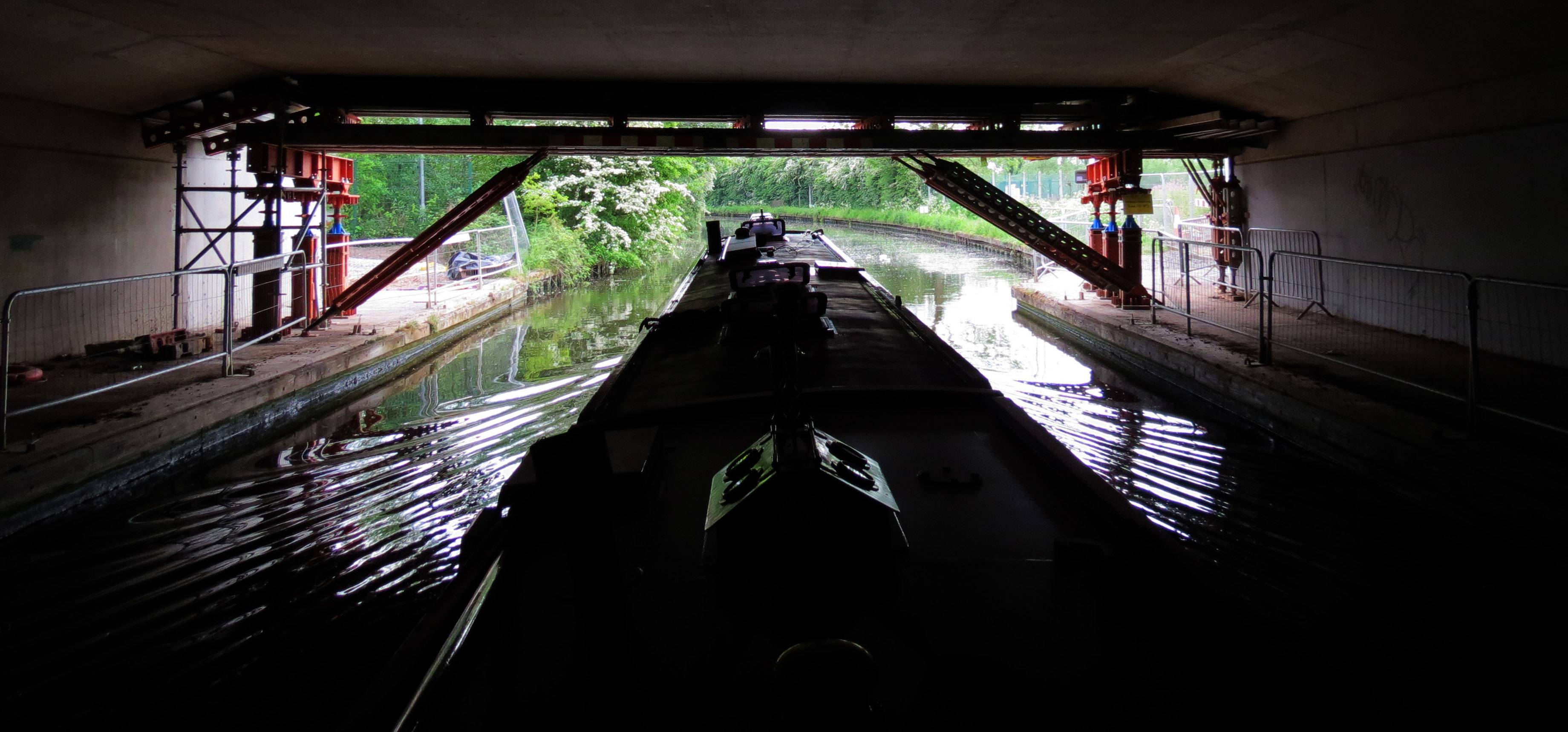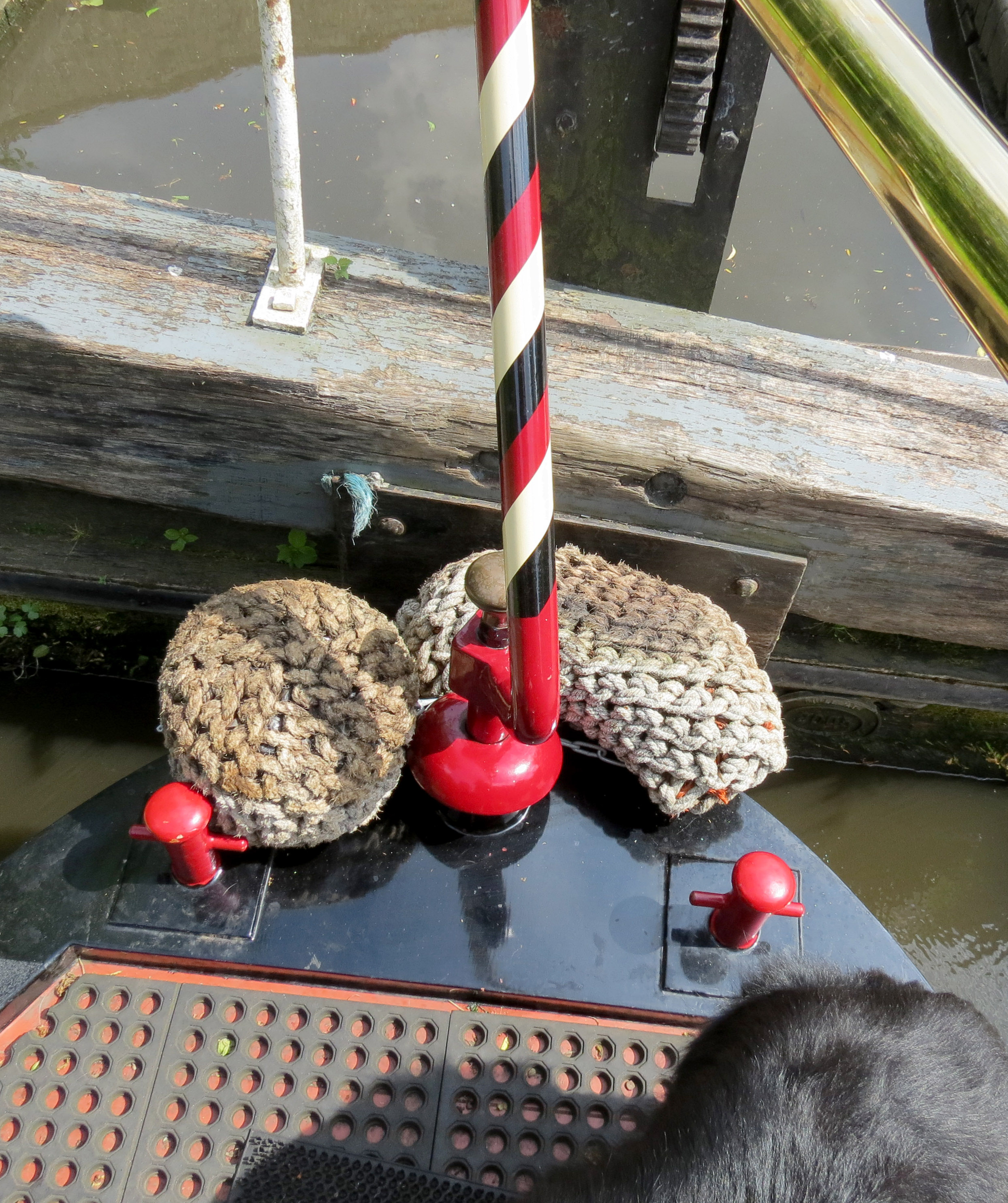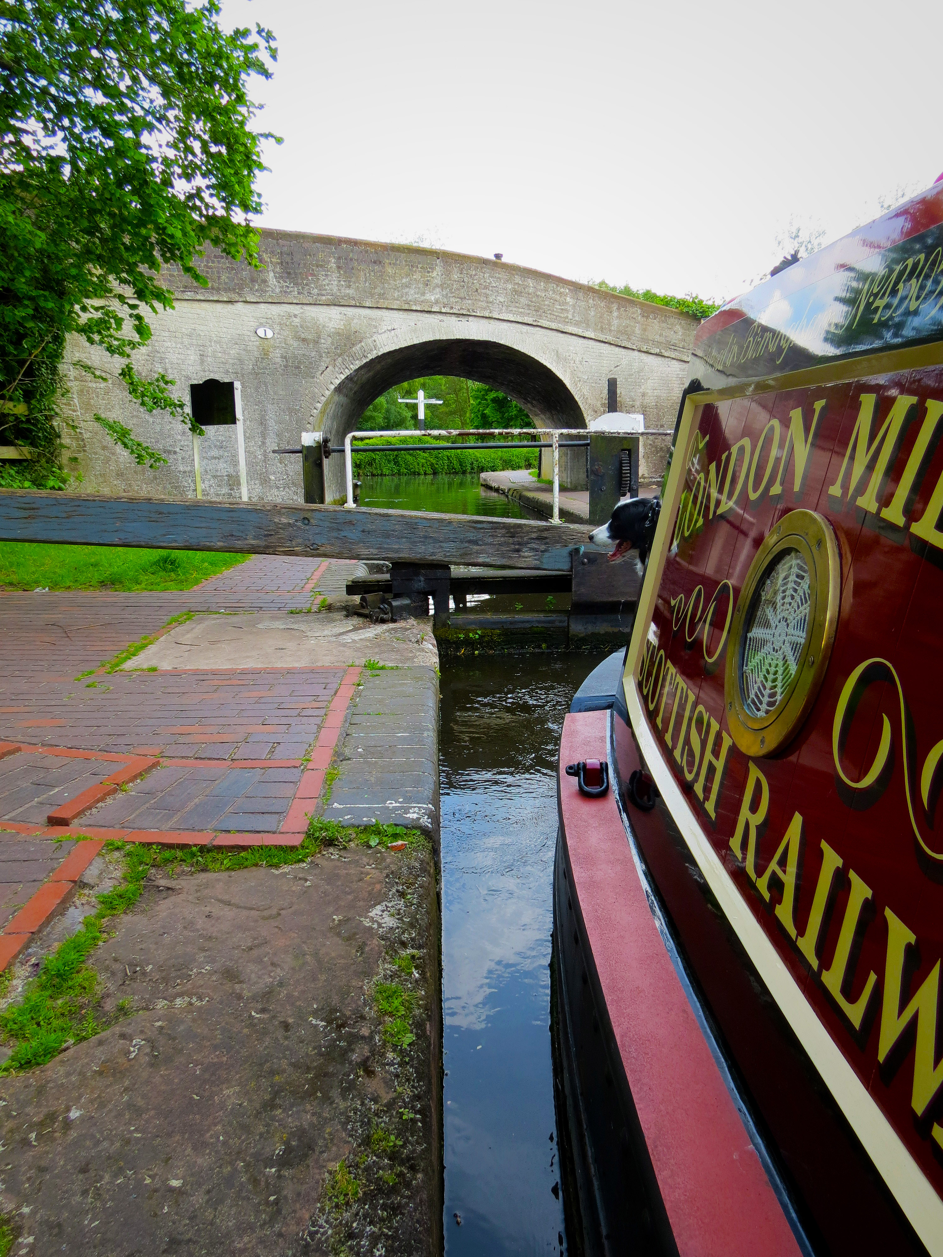 It was a tight squeeze through the stop lock at Autherley Junction, so tight that Roy had to lift the fenders off the back of the boat so he could open the lock.
