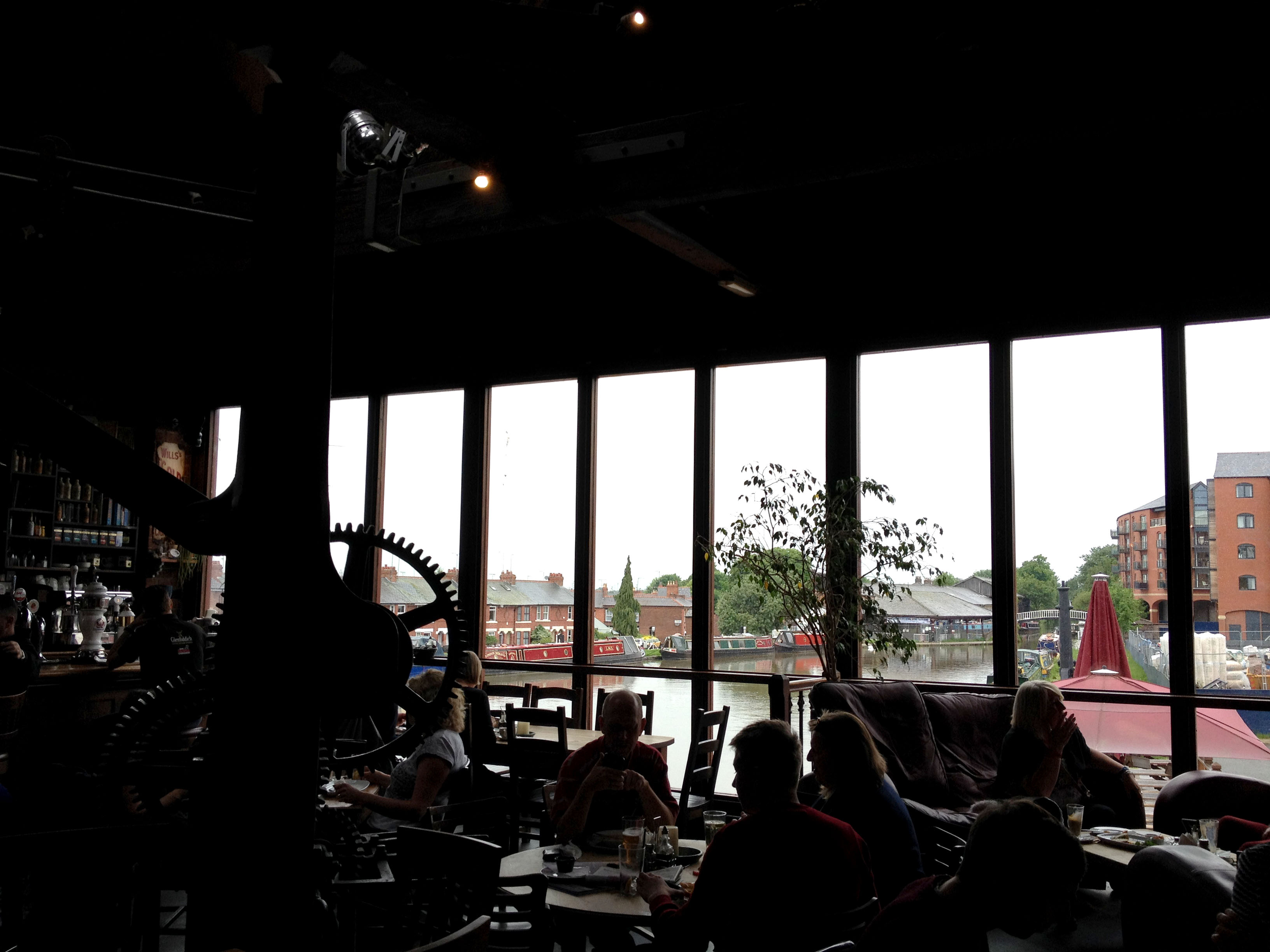 We stopped for a late lunch in Telford’s Warehouse where we had a good view of Foxglove. I had Chicken Thai Noodles, as I wanted to try something different (although I wish I hadn’t!!) and Roy had the hugest burger I have ever seen!! He looked very happy!