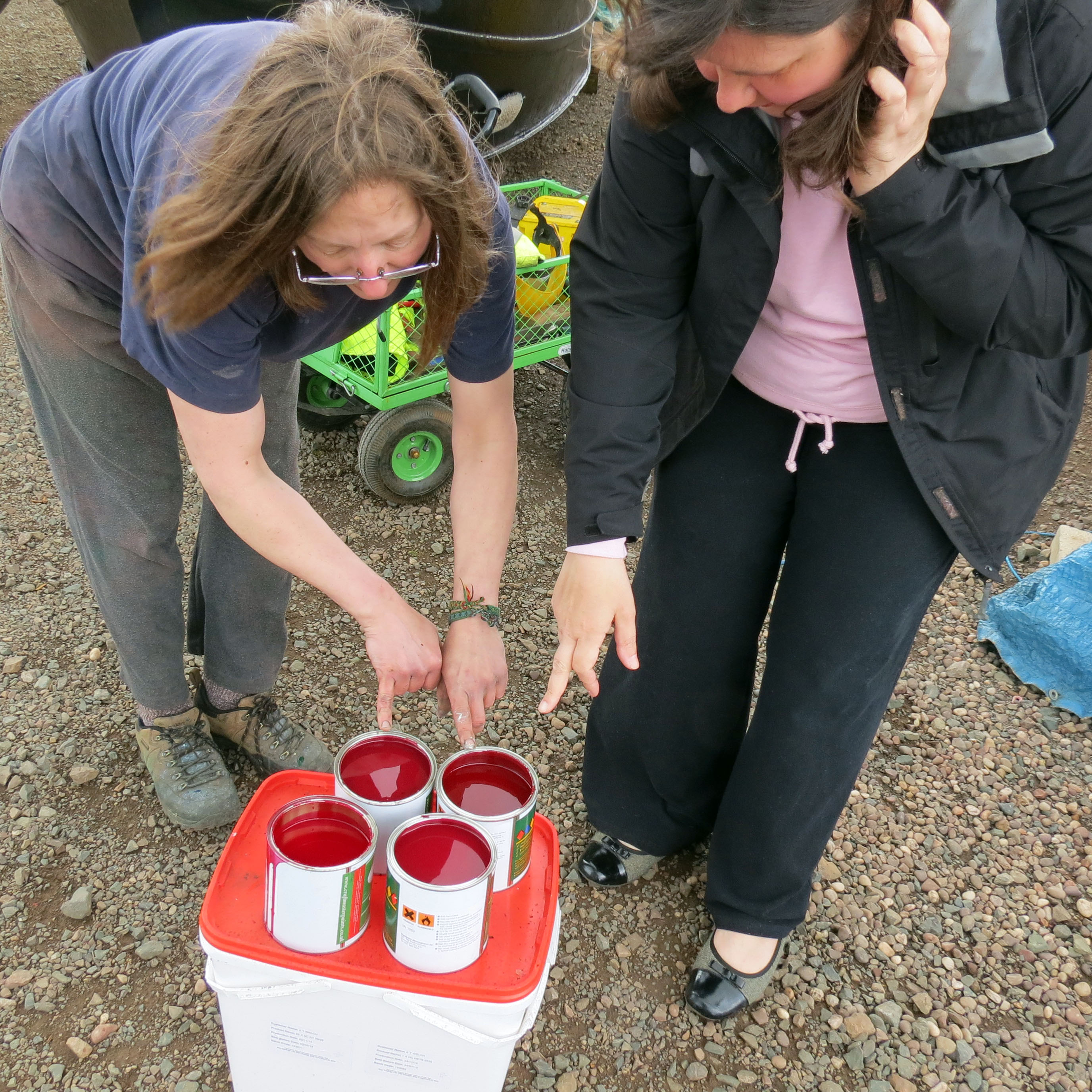 I came away though worried sick in case I have chosen the wrong colours. All the colours looked so different in different light, when stirred, inside, outside in the light……..it was very confusing. One of the things you have to consider is when the paint should eventually fade. Some reds fade to pink, dark reds can go brown or maroon…….it’s a costly mistake if we get the colour wrong. I will never know until I actually see it on Foxglove. Scary!